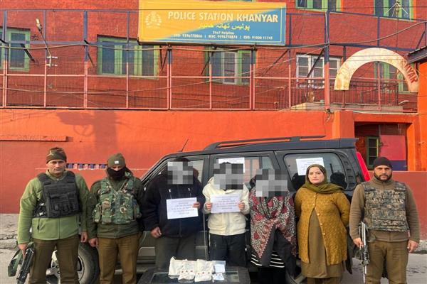 Srinagar, Feb 5 — Srinagar Police on Thursday arrested three members of a family in the Khanyar area and recovered a substantial quantity of heroin, valued in lakhs of rupees, from their possession.