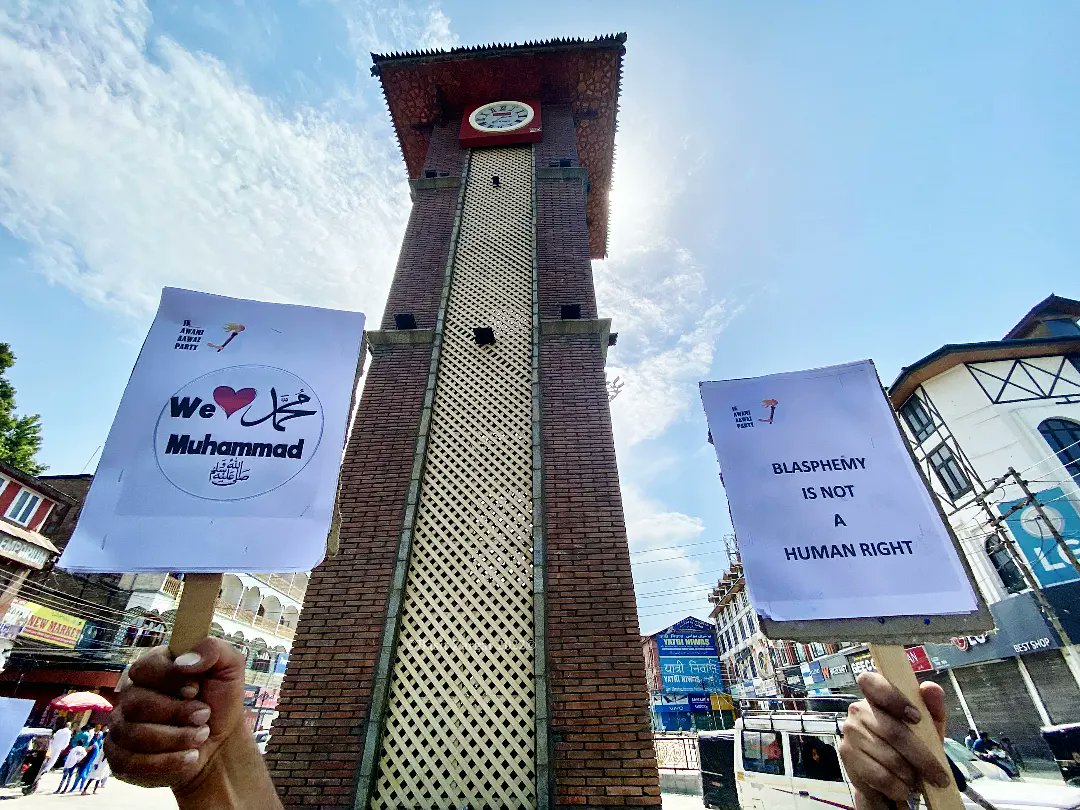 Srinagar residents have been continuously protesting against the blasphemous remarks including college students.